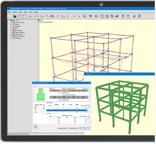 The design and verification module EuroReinforcedConcrete is intended for the design and verification of flat and spatial reinforced concrete bar structures according to PN-EN 1992-1-1 Eurocodes 2 in the program ArCADia-RAMA, in a flat and complex load condition.